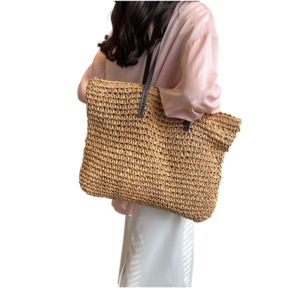 Handwoven Large Handbag Straw Tote Bag Rectangular Shape