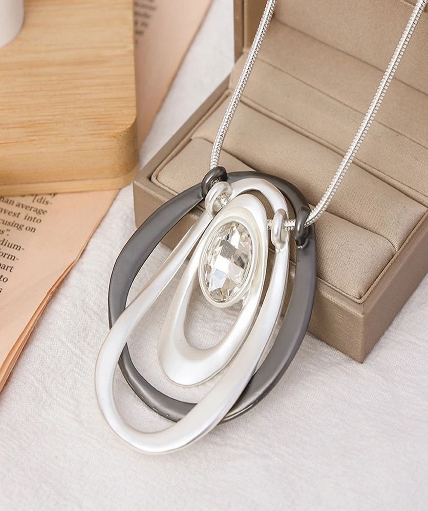 Long Sweater Necklace for Women Pendant Necklace Gem in Hammered Loops