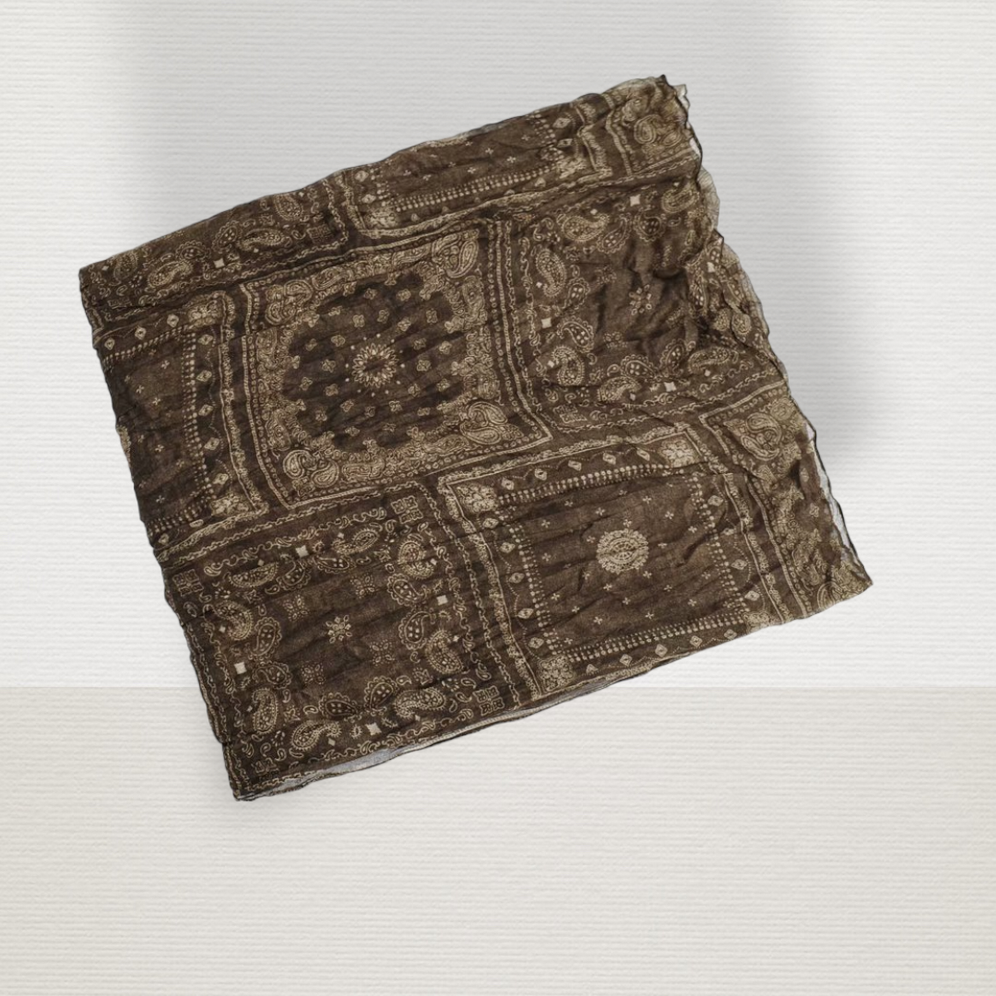 This Scarf Long Crinkle Ethnic Boho Pattern is a beautiful vintage-inspired, retro-looking garment with a paisley motif. It is soft, lightweight, and comfortable to wear, creating a unique bohemian-style look. Hand wash and hang to dry is recommended for best results. It is made with 100% cotton.