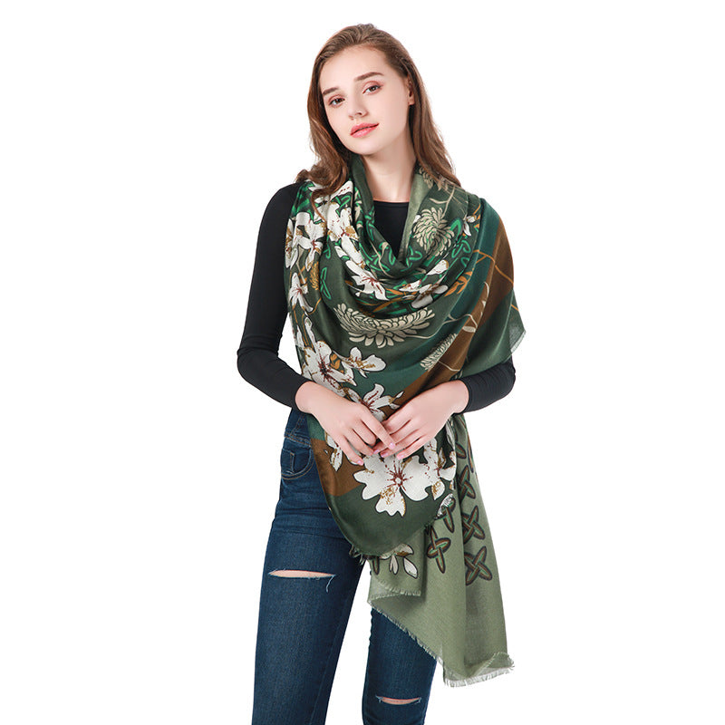 This scarf is crafted from top-quality cotton, boasting a lightweight and soft feel that is comfortable to wear. It features a beautiful flower pattern and is large in size (90x180cm), perfect for looping around the neck twice, draping over the shoulders, or styling as a headscarf. Hand-washing is recommended for this scarf in order to maintain its delicate fabric and superb breathability.